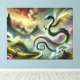 This breathtaking design features a majestic dragon soaring above a mystical mountain landscape. Flowing clouds in golden, lavender, and jade hues swirl around the creature as its elegant wings spread wide. The scene combines dramatic peaks, twisting trees, and ethereal light, creating a powerful blend of fantasy, mythology, and dreamlike beauty.