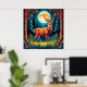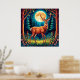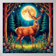 A majestic deer gracefully standing in a luminous forest bathed in moonlight, surrounded by flowers and serene trees. The vivid colours and glowing ambiance evoke calmness, wonder, and natural elegance.