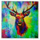 A majestic deer head with large woods in a modern style of painting. A proud and majestic stag head on a colorful background in modern painting style.