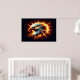 A powerful eagle is shown soaring amidst a backdrop of intense flames, creating a mesmerising and dramatic scene.