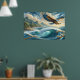 A painting of a majestic eagle soaring above a crashing wave, depicted with intricate details in oil against a gold and marble background. symbolising strength, patriotism, and freedom.