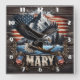Majestic Eagle Over Water With Mountain Background Square Wall Clock