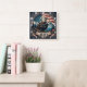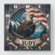 Majestic Eagle Over Water With Mountain Background Square Wall Clock