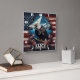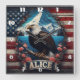 Majestic Eagle Overlooking Mountains and Flag Square Wall Clock