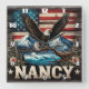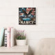 Majestic Eagle Perched Amidst Mountains and Flag Square Wall Clock