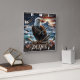 Majestic Eagle Perched on a Branch With Flag Square Wall Clock