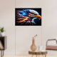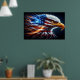 A powerful eagle proudly adorned with an American flag on its head, symbolising strength, freedom, and patriotism. The majestic bird is captured in a bold and patriotic display