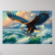 Majestic Eagle Swooping Down to Catch Fish 20x16 Poster