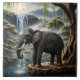 Majestic Elephant Drinking at Serene Waterfall Tile