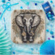 Majestic Elephant Mandala. illustration of an elephant at the centre, intricately designed with patterns resembling mandalas and floral motifs. The elephant's head is adorned with elaborate designs, blending seamlessly into its natural features. Surrounding the elephant are delicate, symmetrical floral patterns, with leaves and flowers in muted shades of beige, brown, and soft blue. The entire image has a harmonious and balanced composition, creating a sense of elegance and tranquillity.