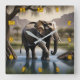 Majestic Elephant Wading in Serene Water at Dawn Square Wall Clock