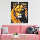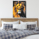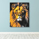 Majestic face of the African lion in a dark. Yellow and grey version. Digital Art.