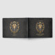 Majestic golden lion head with black mane. Fine artistic details on the face to emphasize the animal's strength and grace. This combination of gold and black gives the design a classy and luxurious feel.