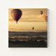Majestic scene of hot air balloons floating in a sunset sky over a misty landscape.