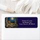 A leopard themed personalized return address labels. On the front is an illustration of a majestic leopard with fur like molten gold, laying on a cliff ledge bathed in ethereal moonlight. Intricate carvings adorn crumbling stone pillars, and bioluminescent flora casts a soft, otherworldly glow. The scene is rendered in a rich, textural oil painting style with thick strokes.