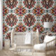 Step into a world of artistic wonder with this breathtaking wallpaper, featuring a regal watercolor lion adorned with intricate mandala patterns. Surrounded by a vibrant mix of lilies and roses, the swirling vines and soft watercolor splashes enhance the design’s balance and elegance. The symmetrical arrangement radiates harmony, making this wallpaper a perfect choice for nurseries, meditation spaces, or stylish bohemian interiors. Bring the essence of strength and beauty into your home with this mesmerising blend of wild spirit and floral artistry.