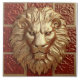 Enhance your home with this exquisite ceramic tile featuring a 3D illustration of a lion head with a golden border, isolated on a vibrant red background. The detailed design and opaque resin panel style create a realistic yet stylised look that adds a touch of sophistication to any space. Inspired by precisionist art and metal compositions, this striking lion head tile is perfect for kitchen, bathroom, or any room where you want to showcase your unique style.