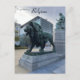 This postcard features a view of a majestic lion statue in Brussels, Belgium. Photo credit: Kamran Abbasov, 2022.