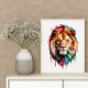 Majestic Lion Rainbow Watercolor Splash Art Poster