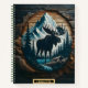 A majestic moose stands gracefully in a serene wilderness, framed by towering mountains and lush pine trees, bathed in early morning light.