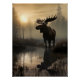 This poster, by PS Nature Designs, captures the serene beauty of a bull moose standing gracefully in a misty swamp, bathed in the golden light of early morning. A perfect addition for nature enthusiasts and wildlife lovers.