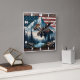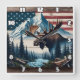 Majestic Moose in Front of Mountains and Flag Square Wall Clock