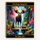 Majestic moose stands by a serene forest stream notebook