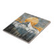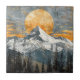 This bold mountain ceramic tile showcases a towering snow-capped peak set against a textured golden sun and a misty, distressed sky. Dark pine forests in the foreground add depth and contrast, creating a dramatic wilderness scene with a rustic, bohemian touch. The rich blend of cool mountain tones and warm golden hues makes this versatile. A unique gift idea for outdoor adventurers, hikers, campers, nature lovers, or anyone who appreciates modern rustic landscapes. Ideal for birthdays, holidays, or seasonal gift giving.