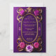 This uniquely designed majestic purple wedding invitation features an oval beautiful gold frame design with large purple and pink roses with a purple gradient background. This invitation is sure to "wow" your guests for your great occasion.
