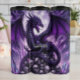 This detailed illustration features a magnificent purple and black dragon with large, sweeping wings, perched atop a massive mound of human skulls. Glowing purple crystals surround the base, and mystical symbols are visible in the background, creating a powerful and dark fantasy scene.
