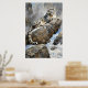 Majestic Sentinel: Snow Leopard on Rock - Painting Poster