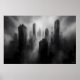 This dramatic artwork features a monochromatic cityscape, showcasing towering skyscrapers engulfed in a dense fog, creating an atmospheric and mysterious effect. Perfect for modern urban spaces or minimalist decor, this black and white print captures the raw power and grandeur of city life, enveloped in mist and mystery. Ideal for fans of contemporary architecture, urban landscapes, or abstract city art looking to make a bold statement in their home or office decor.