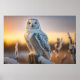 Majestic Snowy Owl Perched on a Tree Branch Poster