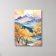 This breathtaking watercolor painting captures the majesty of a mountain range at sunset. The sky is ablaze with vibrant colours of orange, pink, and purple, while the snow-capped peaks are bathed in a warm golden glow. The trees in the foreground stand tall and proud, silhouetted against the dramatic sky. The winding river adds a sense of peace and tranquillity to the scene. This beautiful painting is sure to add a touch of nature's wonder to any home.