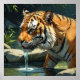 Majestic Tiger Drinking Water from River Painting Poster