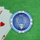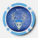 These poker chips have a majestic looking white deer head with large white antlers wearing a crown of three blue roses on top of its head on a deep blue misty background. Customise your initials or text with the templates.