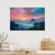 Majestic White Horse in the Mountain at Sunrise Poster