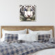 Abstract white tiger with blue eyes art wrapped canvas. A beautiful addition to brighten up any office or living space.
