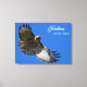 A Photographic Moments Design featuring a red-tailed Hawk gliding effortlessly on a stiff upper breeze over her resting place atop the Pine Trees where her nest is located. Bring the beauty and majesty of this colourful bird of prey to the walls of your home or office with this stretch canvas print. This elegant and attractive artwork comes complete with customisable text lettering to suit your own special occasion. ADD OTHER MATCHING ACCESSORIES OR GIFT IDEAS FROM THE BIRD OF PREY COLLECTION AVAILABLE FOR PURCHASE THROUGH THIS STORE.