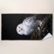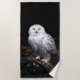 Animal portrait photograph of majestic snowy owl standing on a branch.