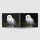 Animal portrait photograph of majestic snowy owl standing on a branch.