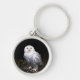 Animal portrait photograph of majestic snowy owl standing on a branch.