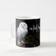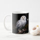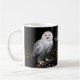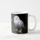 Animal portrait photograph of majestic snowy owl standing on a branch with a personalizable custom name monogram above.