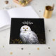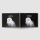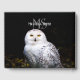 Animal portrait photograph of majestic snowy owl standing on a branch with a personalizable custom name monogram above.