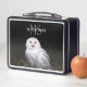 Animal portrait photograph of majestic snowy owl standing on a branch with a personalizable custom name monogram above.