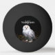 Animal portrait photograph of majestic snowy owl standing on a branch with a personalizable custom name monogram above.