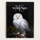 Animal portrait photograph of majestic snowy owl standing on a branch with a personalizable custom name monogram above.