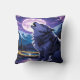 A powerful wolf howls beneath a glowing full moon, surrounded by towering mountains and tranquil waters reflecting the night sky's magic.