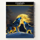 Beneath a brilliant full moon, two majestic wolves stand atop a snowy landscape, their silhouettes illuminated by the moonlight