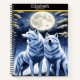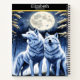 Two magnificent wolves stand in a moonlit forest, their plush fur shimmering under the enchanting glow of a full moon. Surrounded by tall trees and a starlit sky, they join in a haunting howl, echoing the wild beauty of the night.